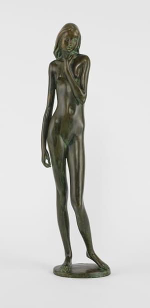 Nu féminin debout, bronze à patine verte, monogrammé et cachet d...