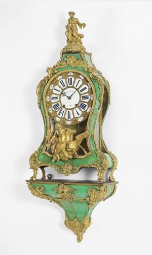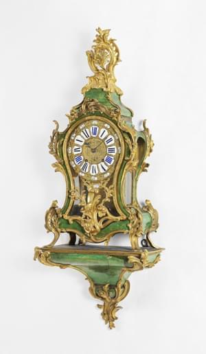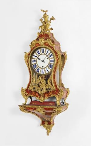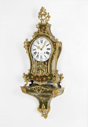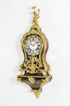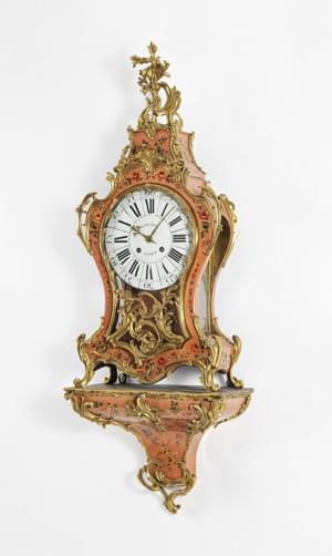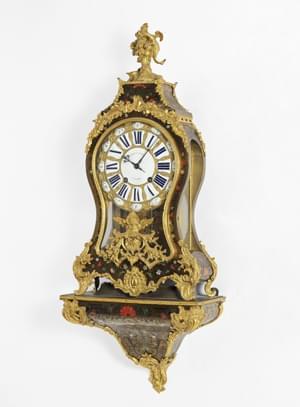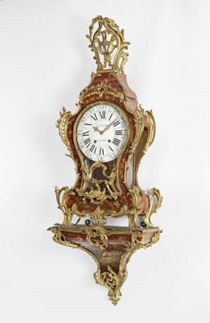 217. Cartel et sa console d'époque Louis XV, cadran et mouvement sign...