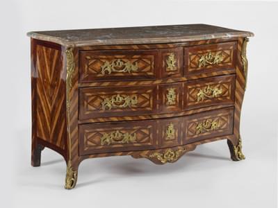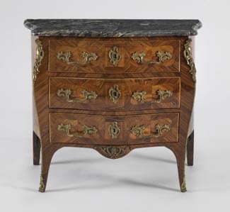 Trois tiroirs, marqueterie de bois de rose et bois de violette,...