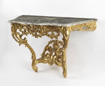 209. Cartel et sa console d'époque Louis XV, cadran signé Mayer