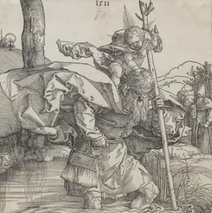 Saint Christophe, bois, 21x21cm.Très belle épreuve coupée sur le...