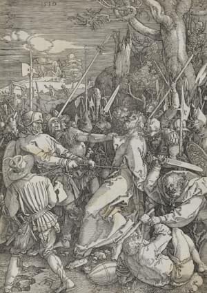 Le baiser de Judas. Planche de la série La Grande Passion, bois,...