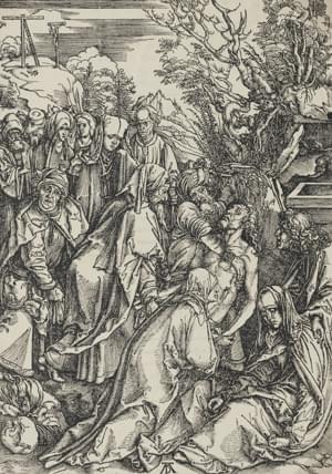 La Déposition. Planche de la série de la Grande Passion, bois, 3...