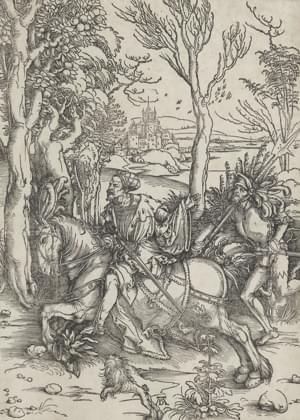 Chevalier sur son cheval et lansquenet, bois, 39x28,2cm.Très bel...