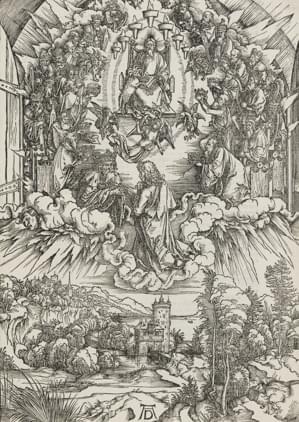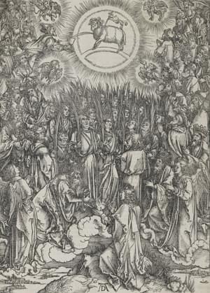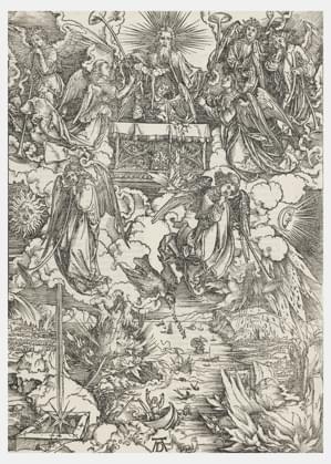 L' Adoration de l'agneau. Planche de la série l'Apocalypse, bois...