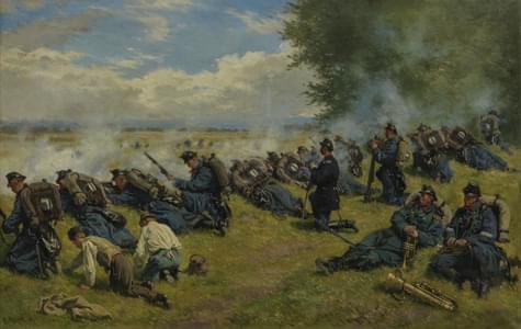 Les tirailleurs, huile sur toile, signée et datée sur le cartel...