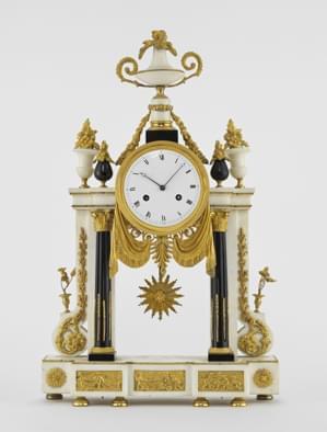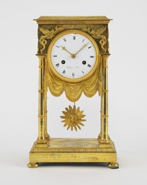 Bronze doré à motif de chimères et draperies, cadran émaillé bla...