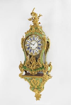 204. Cartel et sa console d'époque Louis XV, cadran signé Thiout Le J...