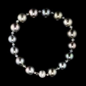 Sertie d'une perle grise (D env. 8,9 mm) et d'une perle de Tahit...