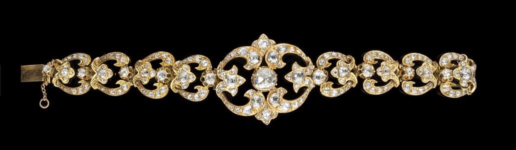 Cadran et aiguilles dorés, index en diamants, date à guichet à 3...