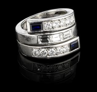 368. Adler, bague à deux bandeaux croisés pavés de diamants et de dia...