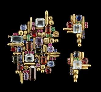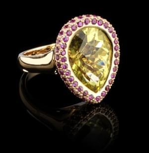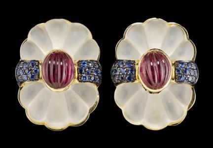 Rehaussées de petits rubis taille cabochon et de saphirs taille...