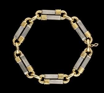 346. Caplain Paris, bracelet à maille palmier bicolore terminé par un...