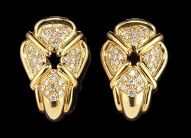 355. Chaumet, Clip d'oreilles godronnés et ajourés pavés de diamants