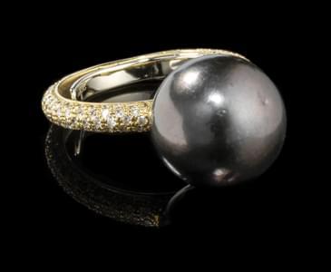 359. Adler, bague sertie d'une perle de Tahiti (D env. 13 mm)