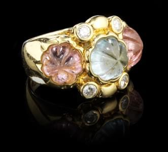 Probablement aigue-marine et tourmaline rose, rehaussées de diam...
