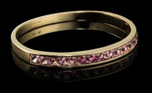 363. Adler, bracelet jonc ouvrant serti d'une ligne de tourmalines ro...