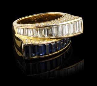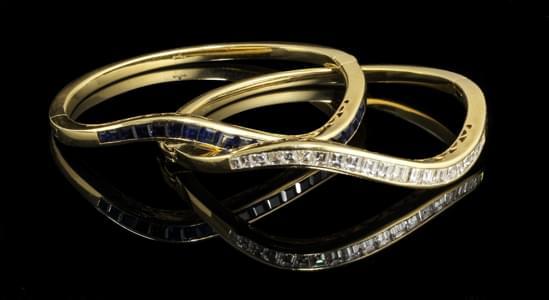 Sertis l'un d'une ligne de saphirs et l'autre d'une ligne de dia...