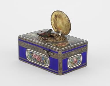 398. Boîte à oiseau chanteur émaillée bleu nuit