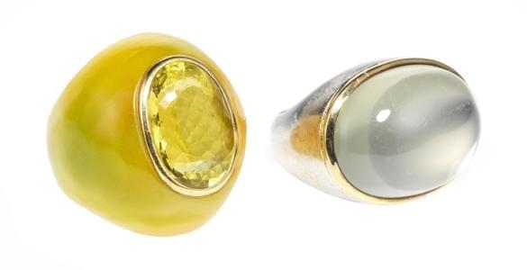 3914. Lot de deux bagues, l'une sertie d'une pierre de Lune taille cab...
