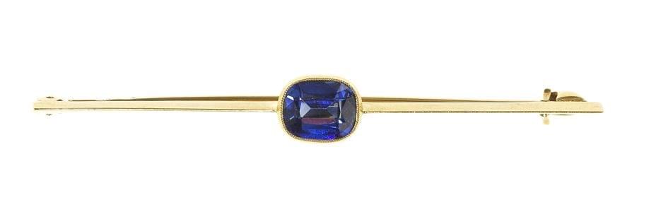3918. Broche-barrette sertie d'un saphir taille coussin probablement s...