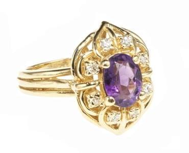 3924. Bague sertie d'une améthyste taille ovale (env. 1 ct) entourée d...