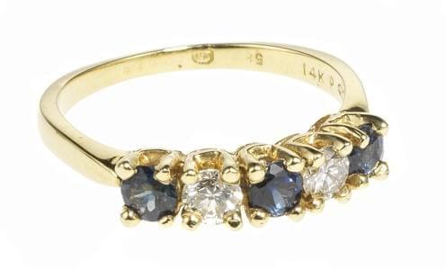 3925. Bague sertie d'une ligne de saphirs (env. 0,5 ct) alternés de di...