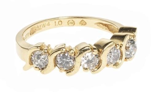 3926. Bague sertie d'une ligne de cinq diamants (total env. 1 ct)