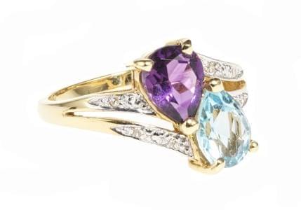 Sertie d'une améthyste taille poire (env. 0,6 ct) et d'une topaz...