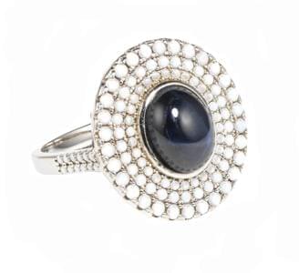 Entouré d'un pavage d'opales blanches taille cabochon, argent 92...
