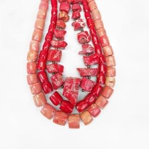 3931. Lot de trois colliers de corail rouge et de bambou de corail ros...