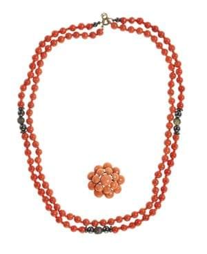 L'un composé de perles de corail peau d'ange sculptées et l'autr...