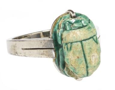 3941. Bague sertie d'un scarabée en faïence bleue d'Egypte probablemen...