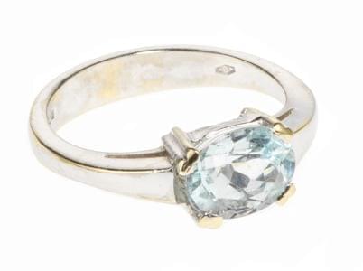 3949. Bague sertie d'une aigue-marine taille ovale (env. 1,6 ct)