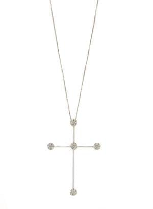3951. Croix sertie de petits diamants, retenue par une chaîne à maille...