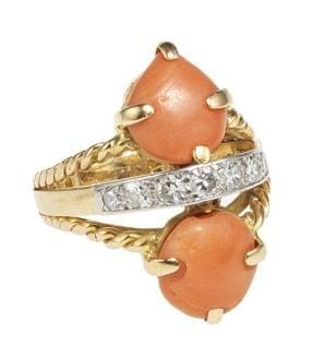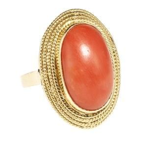 3966. Bague sertie d'un corail taille cabochon ovale (env. 17,3x10,3 m...
