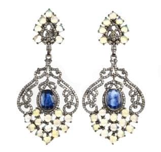 Centrés de cyanites taille ovale (env. 4 ct), pavés d'opales tai...