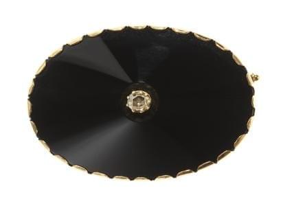3968. Broche ovale sertie d'un onyx centré d'un diamant taille rose