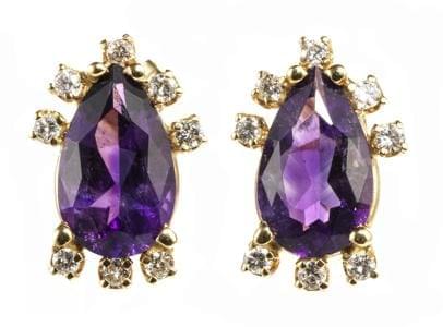 3972. Boucles d'oreilles centrées d'améthystes taille poire (env. 4 ct...