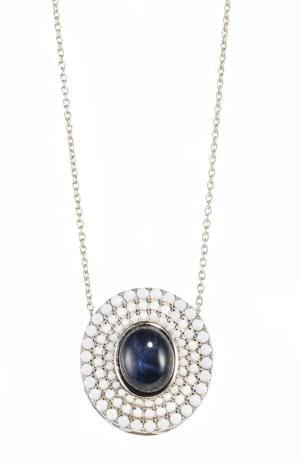 3973. Pendentif ovale centré d'un saphir taille cabochon (env. 4 ct)