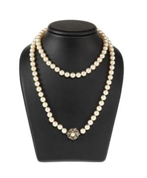 Fermoir en or 750 soudé, L 65 cm. On joint un collier de perles...