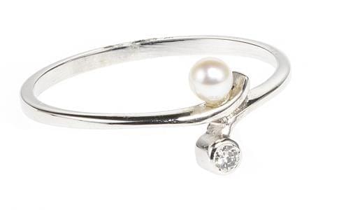 3977. Bague sertie d'une perle (D env. 3 mm) et d'un petit diamant en...