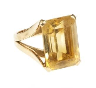 3984. Bague sertie d'une citrine taille émeraude (env. 10 ct)