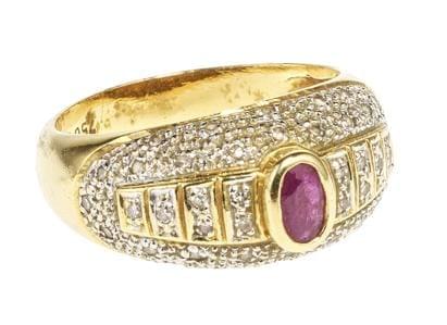 3992. Bague sertie d'un rubis taille ovale (env. 0,15 ct) épaulé de pe...