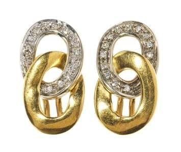 3995. Clips d'oreilles à maille gourmette deux ors sertis de diamants