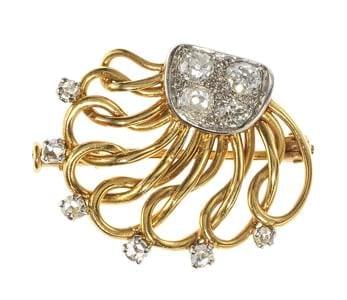 3997. Broche stylisée ajourée sertie de diamants taille ancienne