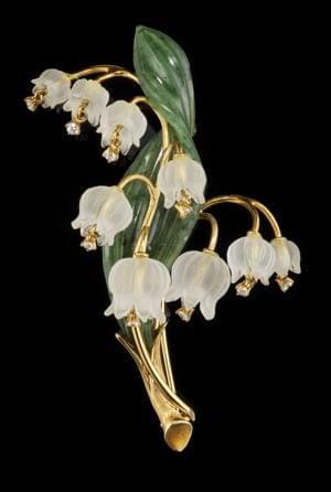 4103. Broche à motif de brin de muguet en pierres dures sculptées