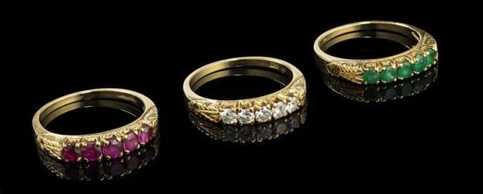 4114. Lot de trois anneaux ciselés sertis, l'un d'une ligne de diamant...