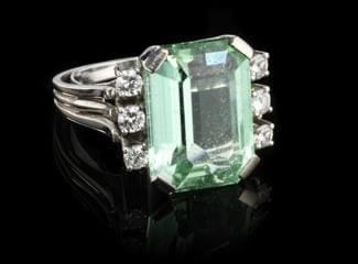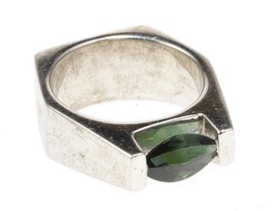 4120. Bague design sertie d'une tourmaline verte facettée de forme mar...