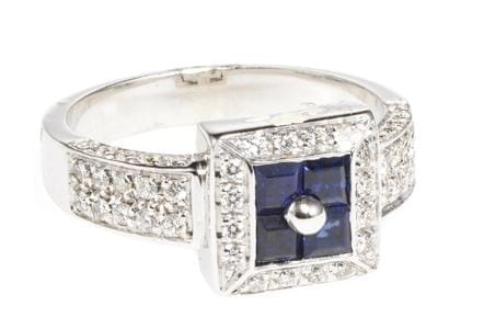 4136. Bague de style Art déco centrée d'un motif de quatre saphirs cal...